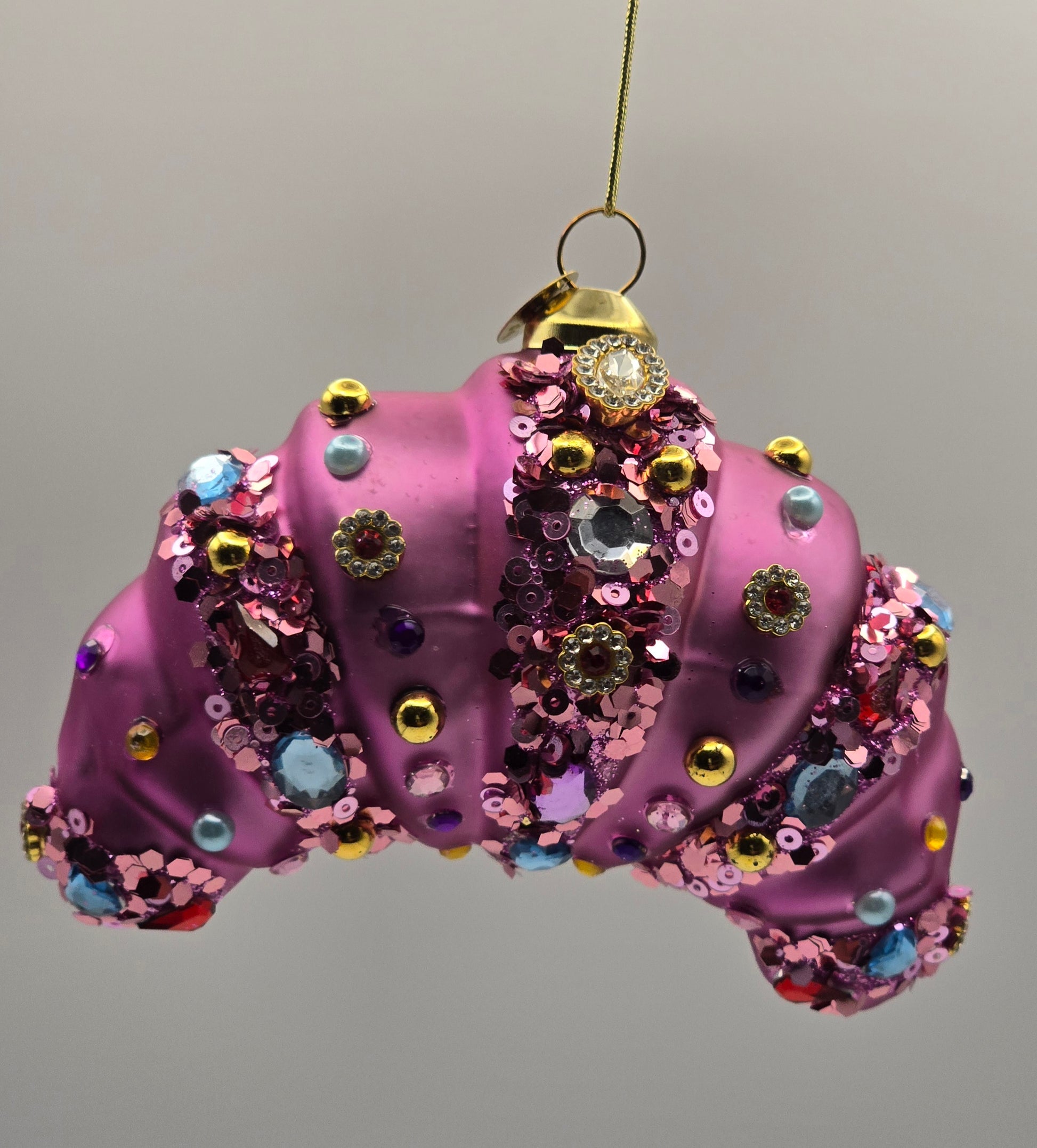 Croissant rosa verziert mit bunten Steinen
